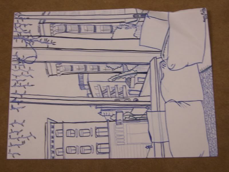 We had to do a drawing of a view through a window. So I went to this cute little cafe down the street, ordered a green tea latte and proceeded to draw for two hours.